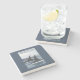 The coasters are gorgeous, a quality feel and heavy weight. They look like a precious archeological find. A rustic stone juxtaposed with a modern floral black and white print. I like the way the print goes slightly imperfect on the cut stone edges giving them a kind-of natural beauty.