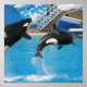 Orca whales jumping out of the ocean poster print.