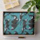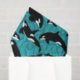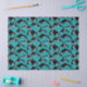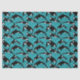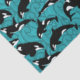 Add an aquatic touch to gifts with this illustrated tissue paper that features illustrations of orcas or killer whales in black and white set against a teal blue ocean waves background.