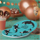 Create your own custom killer party supplies--killer whales, that is. These paper plates feature illustrations of orcas or killer whales in black and white against a teal blue background and are ready to be personalised with your text in bold black lettering.