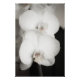 A still life photograph of white orchid blossoms on a black background. Image Copyright ©Kimberly J Tilley.