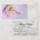 A close up view of an orchid. On the reverse is a delicate image of a tree and canopy.