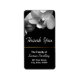 Black and white photography of Orchid on black background. Golden line to create two spaces: Thank you and Address. Customisable Sympathy Thank you label. Matching Sympathy Thank You note cards, photo cards, invitation and guest Book.