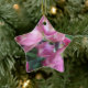 This star shaped ornament has pink orchids on one side and a Christmas tree on the other