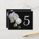 Customise these elegant Orchid on Black Table Numbers and create a different card for each table at your marriage reception, bridal shower or party. These classy custom flowery table number cards feature a floral photograph of white phalaenopsis orchid flower blossoms on the stem with a black background.