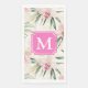 This napkin design features tropical orchid flowers on a cream coloured background. In the centre is a pink notched square frame with a monogram initial.