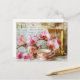 Orchids alongside a teacup and picture frame postcard