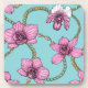 Orchids and chains, pink and blue coaster