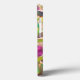 The orchids are blooming again in the garden, in the original photograph by ZoeSPEAK on this iPhone 13 Case. The flowers, emerging from a curving green stem, have purple centres which blend into yellow at the tips of the petals. The natural wood background sets off the sculptural shapes and colours.