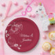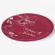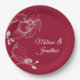 Elegant and romantic wedding paper plates featuring a beautiful and delicate white orchids line drawing design on one side, over a classic dark red background. Easily edit the template fields to add the bride and groom names in a classy white script.