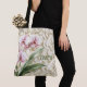 This tote bag design features tropical orchids with a woven pattern background. You can personalise with a name.