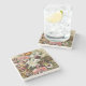 The coasters are gorgeous, a quality feel and heavy weight. They look like a precious archeological find. A rustic stone juxtaposed with a modern floral black and white print. I like the way the print goes slightly imperfect on the cut stone edges giving them a kind-of natural beauty.
