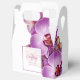 Orchids provide an ornamental backdrop for this floral wedding favour box. Great for warm weather events, weddings, anniversaries, outdoors, indoors. Use to complement floral wedding event themes, including tropical themes. Easily add the names of the wedding couple and date of the wedding ceremony to the front. Use the template to create your own orchids wedding favour box.
