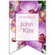 Orchids provide an ornamental backdrop for this wedding bunting banner flags. Great for warm weather events, weddings, anniversaries, outdoors, indoors. Use to complement floral wedding event themes, including tropical themes. Flags 3-6 spell "JUST" and flags 8-14 spell "MARRIED." Use the template to personalise.