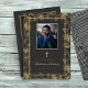 Our easy-to-personalise funeral program template is adorned with a beautiful vintage golden vine and gold frame design. This funeral program comes in a convenient 5 x 7 size. It offers customisation options on both the front and back covers, allowing you to honour your loved one's memory with grace and dignity.