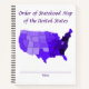 Map of the United States done in shades of purple, representing the order of statehood, is printed on custom personalised notebooks. The first state is done in purple, Delaware, and each state becomes progressively lighter representing the order of progression. There is a placeholder to write in a name or to type in the name before ordering. There are matching products in this store. Thank you for shopping at CherylsArt on Zazzle.
