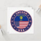 Badge of Oregon with flag of Oregon and flag of USA colours, rounded shape.