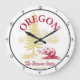 Display your Oregon state pride, with this charming wall clock. It features the Beaver State heritage, showcasing a scenic beaver tree mountains, design. An established 1859 gift, celebrating natural beauty. This Oregon wall clock, adds timeless rustic charm to any home. Perfect for any one.