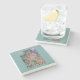 The coasters are gorgeous, a quality feel and heavy weight. They look like a precious archeological find. A rustic stone juxtaposed with a modern floral black and white print. I like the way the print goes slightly imperfect on the cut stone edges giving them a kind-of natural beauty.