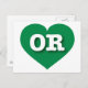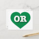 This postcard features an eco-friendly green heart containing the bold, white, upper case letters OR, the official abbreviation for Oregon, the beaver state. The reverse side of the postcard is blank, awaiting your handwritten sentiments or customised text.