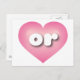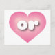 This postcard features a pink heart with a white-washed centre containing the bold, white, rounded lower case letters or, a playful abbreviation for Oregon, the beaver state. The reverse side of the card is blank, awaiting your handwritten sentiments or customised text.