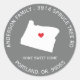 Unique State of Oregon New home address label sticker set on a grey background with a red heart & aeroplane.