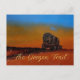 The Oregon Trail postcard with an old tattered silhouetted covered wagon travelling across rough terrain somewhere along The paths that led hundreds of thousands of migrants to their final destination.