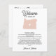 One of the best ways to make your out-of-town guests feel special is a wedding welcome letter included in your wedding welcome gifts. Share a welcome message for your OREGON wedding guests as well as an itinerary or schedule of the weekend's events. Front features your welcome message with a silhouette map of the state OF OREGON with a heart inside.