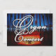 You practice hard, so you need plenty of people to come to your concert to hear the results! Spread the word to as many people as possible with these pre-designed cards. Template space is already there for performer, pieces being played, plus the all-important, where, when, and how much is the entry fee. But these invitations are all customisable, so you must write in your own name and details etc where it has been carefully prepared for you - all easy and far, far quicker than doing it all from the start by yourself! The organ pipes are lit in blue and red for a concert and the organist is seated at the console, playing. Over the top are the words Organ Concert, in a swirling, elegant font.
