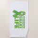 Grab attention for an important cause with the Organ Donor Awareness Beach Towel - a bold statement piece for your next beach day or outdoor gathering. The vibrant green ribbon design printed on the fast-drying polyester front increases awareness while the soft 100% cotton back keeps you comfortable. This generously sized towel provides ample space to spread out while sending an inspiring message about giving hope and saving lives through organ donation. Show your support for this vital cause in the most stylish way with this eye-catching multipurpose towel.