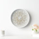 Inspired by the geometric mandala with a boho flare, this clock will look great in any decor. The sunburst style design features a simulated debossed fauz gold image on a faux grey and white stone background. Coordinate with throw pillows, blankets and other accessories. Please note, the faux effect is simulated by artist rendition. Choose from round or square clock.