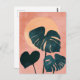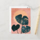 Dusty teal geometric backgrounds cradle soft clay pink leaf silhouettes, blending organic warmth with structured minimalism.