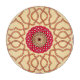 A striking mandala-inspired composition featuring concentric layers of geometric patterns radiating from a central spiral vortex. The design combines organic flowing lines in coral and orange tones with a bold magenta lattice pattern, creating a mesmerising optical effect. The layered structure demonstrates principles of radial symmetry, fractal patterns, and visual depth through colour contrast and geometric precision. Created By EsmArt!