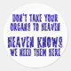 Don't take your organs to heaven. Heaven knows we need them here. The stars in the heavens are shining on this message of organ donation and transplant awareness. Show your support and be a hero, be an organ donor!