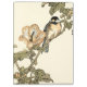 This art print displays sharp, vivid image of an oriental bird perched on a branch. Below it there is an orange flower with a high degree of colour accuracy. This contemporary fine art print of a traditional Oriental-inspired art will add character to any wall in your house.