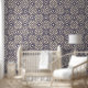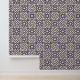 Decorate your home with this wallpaper that is covered in this blue and beige Islamic geometric Moroccan pattern.