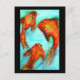with original art design from watercolour painting by Sacha Grossel of three orange oriental goldfish or Koi swimming in serene aqua coloured water. A peaceful design inspired by Japanese and Asian art for good luck Feng Shui water chi, this bright and vibrant design is sure to leave a lasting impression.