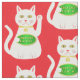 This awesome craft fabric is perfect for all your makes. The design features a graphic design image of a lucky oriental white waving cat. The cat has beautiful gold eyes and is wearing a gold medallion on the collar around its neck. The cat has pink ears and whiskers. This cute little kitty is holding a golden token with green jade inlay and a message in golden text that says "Good Luck".