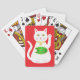 This awesome deck of playing cards features a graphic design image of a lucky oriental white waving cat. The cat has beautiful gold eyes and is wearing a gold medallion on the collar around its neck. The cat has pink ears and whiskers. This cute little kitty is holding a golden token with green jade inlay and a message in golden text that says "Good Luck".
