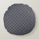 Oriental Navy Blue White Japan Weaving Pattern Round Cushion