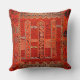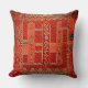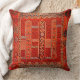 Oriental rug design in orange  -  an antique  image is printed on this   throw pillow  - an illustration from an antique book" "Oriental rugs, antique and modern" (1922)- it was edited and applied on this item by Alma Wad - "nomadic designs prevalent throughout Anatolia. Reciprocal latch-hooksform the background of the central field, on which are three upright panels containing octagonal discs; and latch-hooks surrounding lozenges and forming what may originally have been intended to represent the tree of life appear almost as conspicuously in the border. There are also combs, knots of destiny, and innumerable S-forms. The panel sat the upper and lower ends of the field and the reciprocal Vandykesare most suggestive of Ladiks, but in the place of pomegranates at the ends of the upright stalks are small checquered squares. Bergamos with such patterns are now rarely seen. "