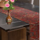 Oriental rug design in dark red and blue long table runner
