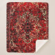 Oriental rug design in dark red sherpa blanket
