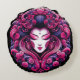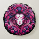 Oriental vector abstract Geisha fractal pink waves Round Cushion