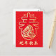 This elegant New Year design features a gold snake on a Chinese letter "spring" with oriental wave pattern on a red background.