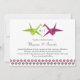 Whimsical kissing paper cranes arranged to form a heart and ornamental flower graphics grace this wedding invitation set, setting the tone for your Zen or Asian-themed wedding. Colours can be customised to suit your motif.