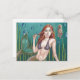 Original artwork of a cute bubble blowing mermaid and a curious seahorse on a nicely printed postcard