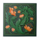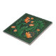 Original Artwork Green and Orange Flowers Ceramic Tile