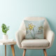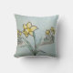The small bunches of daffodils against a soft blue background of this painting on this unique throw pillow stands out as simple but with a story. The little image is titled "lonliness?" the head of the daffodil in the front of the picture hangs down while the bunches of daffs in the background are holding their heads high, so is the daffodil in the front simply alone and thoughtful? or are the daffs in the background self righteous and judgmentle? The colour pencil and ink image is one of my original sketch paintings.