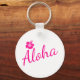 Original pink text design ALOHA and flower Key Ring